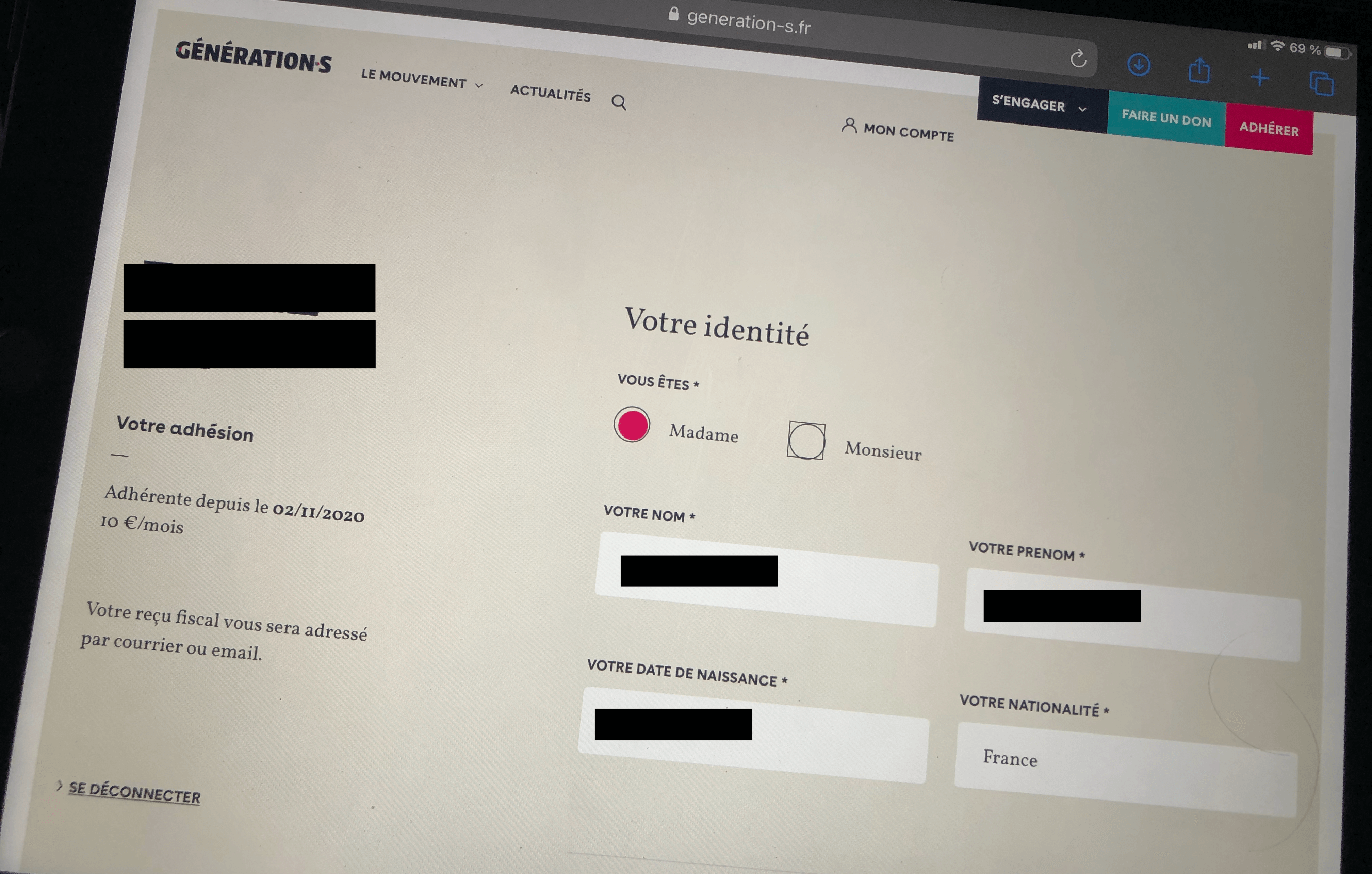 Après ces vérifications je contacte le Secrétariat Général uniquement par mail à adhesion@generation-s.fr si je ne peux toujours pas me connecter à mon espace adhérent.